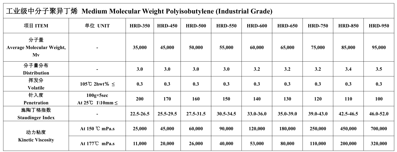 熱塑性間隔條、中空玻璃密封膠、光伏膠、汽車密封膠、熱熔丁基膠帶、復合膠條、藍丁膠、膠黏劑、潤滑脂、盾構油脂、阻尼材料、包裝材料、防腐材料、絕緣材料、電纜填充、聚光器和電容、建筑屋頂、橡膠改性、石蠟改性及瀝青改性等。